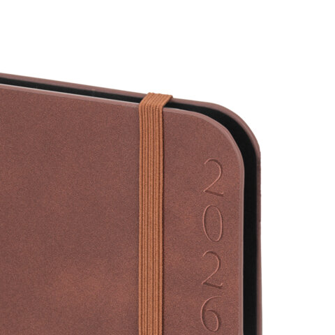 Ежедневник датированный 2026, А5, 151х213 мм, BRAUBERG "Note", под кожу, держатель для ручки, коричневый, 117515
