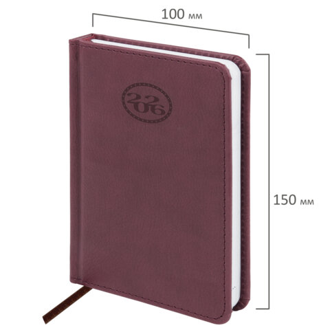 Ежедневник датированный 2026, МАЛЫЙ ФОРМАТ 100х150 мм, А6, BRAUBERG "Favorite", под кожу, коричневый, 117249