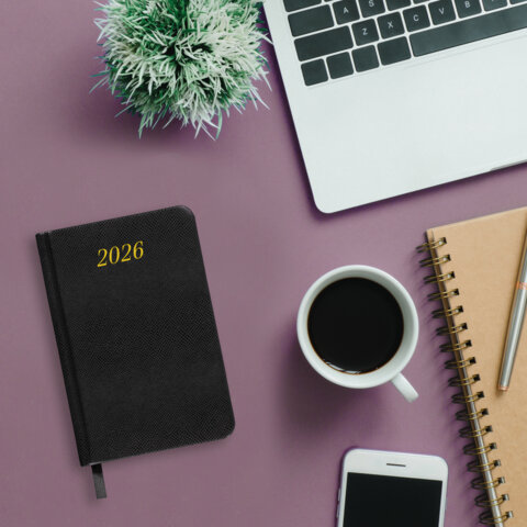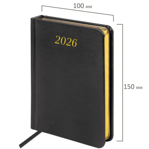 Ежедневник датированный 2026, МАЛЫЙ ФОРМАТ 100х150 мм, А6, BRAUBERG "Iguana", под кожу, черный, 117252