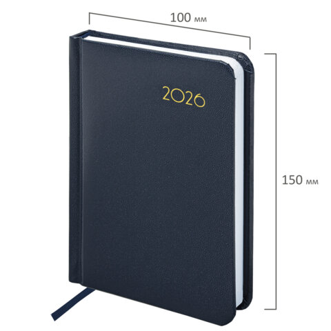 Ежедневник датированный 2026, МАЛЫЙ ФОРМАТ 100х150 мм, А6, BRAUBERG "Select", балакрон, темно-синий, 117259
