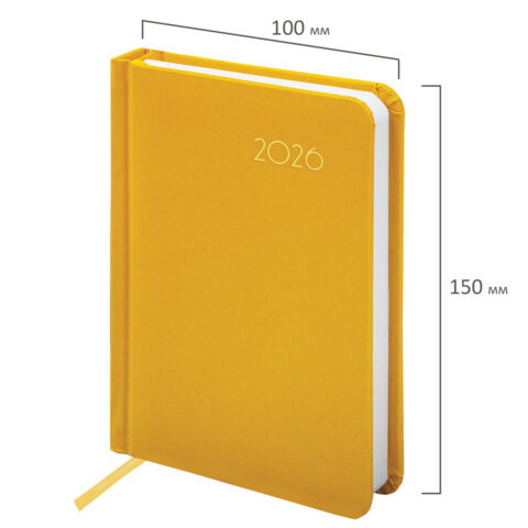Ежедневник датированный 2026, МАЛЫЙ ФОРМАТ 100х150 мм, А6, BRAUBERG "Select", балакрон, желтый, 117261