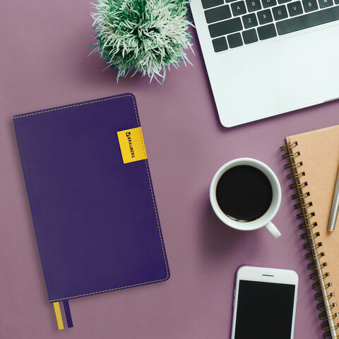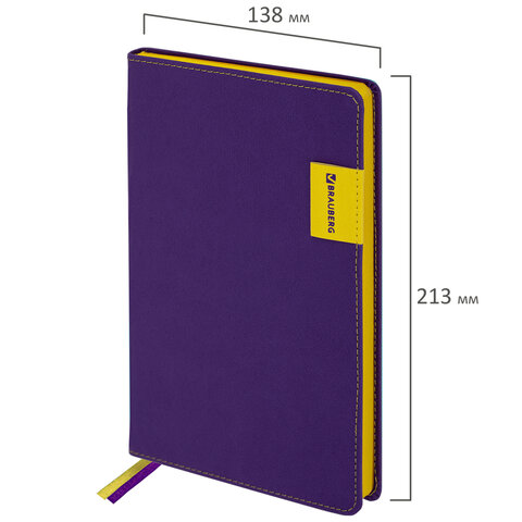 Ежедневник недатированный А5 (138х213 мм), BRAUBERG "AIM", под кожу, 136 л., фиолетовый, 113424