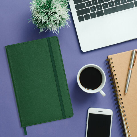 Ежедневник недатированный А5 138х213 мм, BRAUBERG "Base", под кожу, 160 л., темно-зеленый, 116257