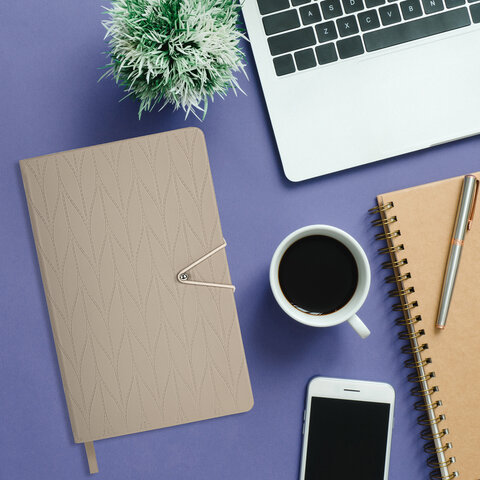 Ежедневник недатированный А5 138х213 мм, BRAUBERG "Braided", под кожу, гвоздик 160 л., бежевый, 116598