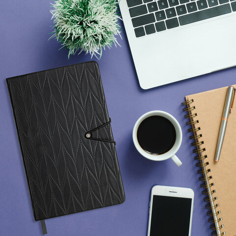 Ежедневник недатированный А5 138х213 мм, BRAUBERG "Braided", под кожу, гвоздик 160 л., черный, 116595
