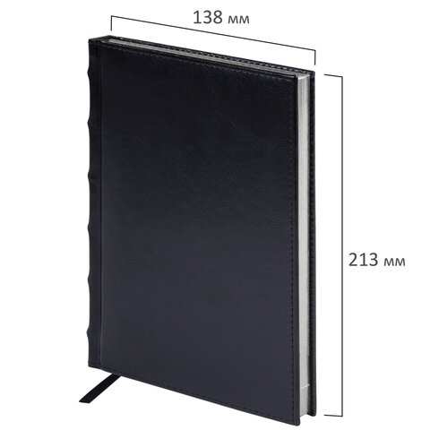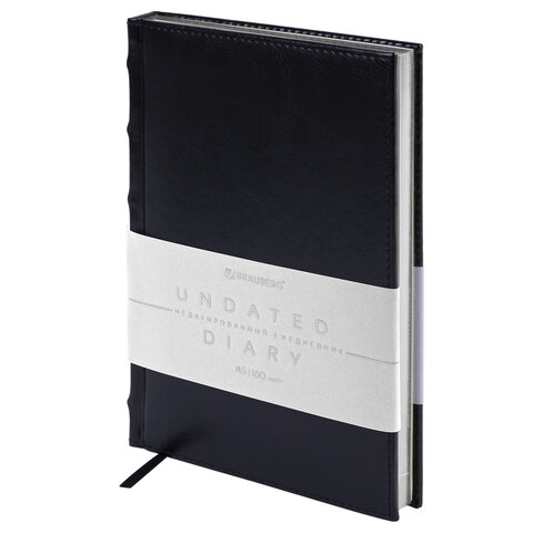 Ежедневник недатированный А5 138х213 мм BRAUBERG "FLAME", под кожу, 160 л., черный, серебряный срез, 113425