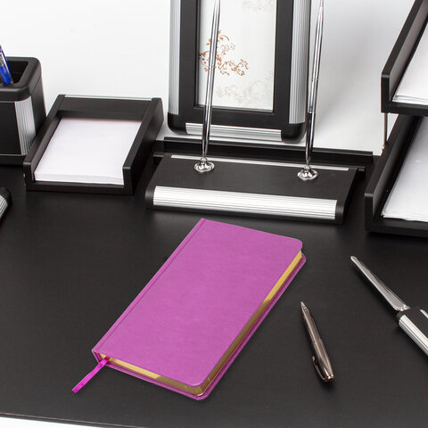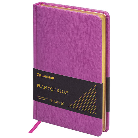 Ежедневник недатированный А5, 138х213 мм, BRAUBERG "Iguana", под кожу, 160 л., лиловый, 114456