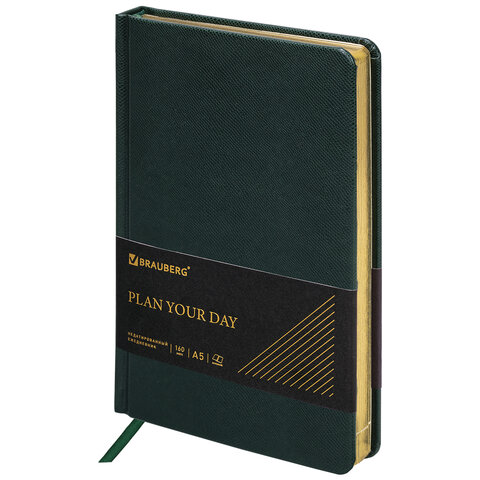 Ежедневник недатированный А5, 138х213 мм, BRAUBERG "Iguana", под кожу, 160 л., тёмно-зеленый, 114457