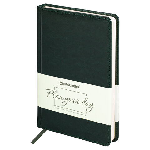 Ежедневник недатированный А5 138х213 мм BRAUBERG "Imperial" под кожу, 160 л., темно-зеленый, 111855