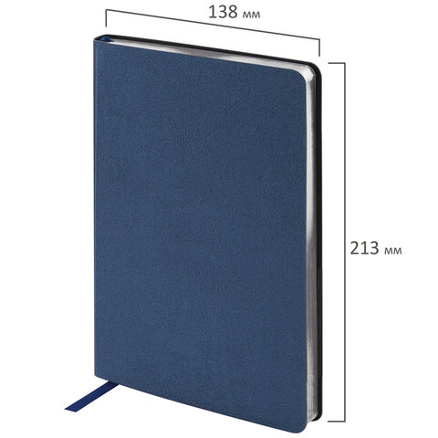 Ежедневник недатированный А5 138х213 мм BRAUBERG "Metallic", под кожу, 136 л., гибкий, синий, 113376