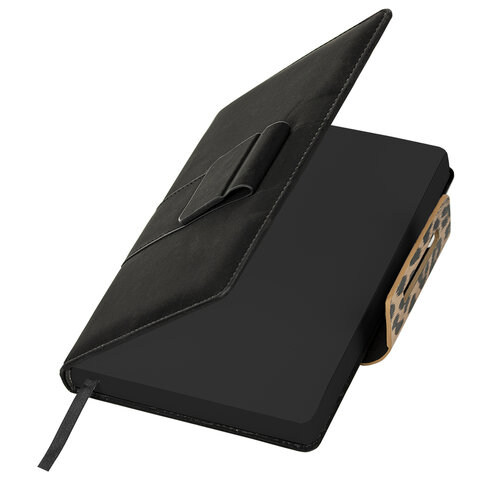 Ежедневник недатированный А5 138х213 мм, BRAUBERG "Safari", под кожу, магнит, 160 л., Leopard, черный, 116592