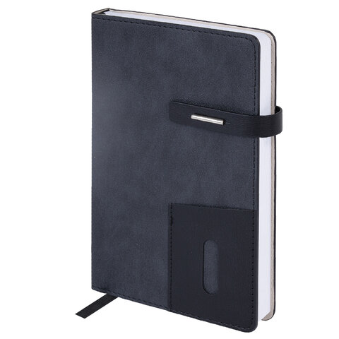 Ежедневник недатированный А5 138х213 мм BRAUBERG "Cowboy", под кожу, застежка 160 л., черный, 116200