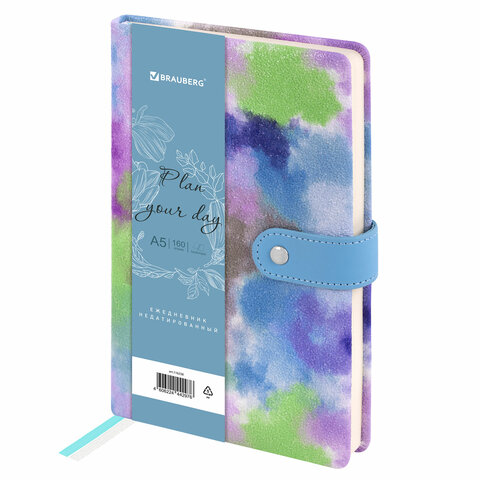 Недатированный ежедневник BRAUBERG в твёрдой обложке с эффектом каменной крошки и застёжкой — яркое, стильное и компактное решение для эффективного планирования и создания имиджа пунктуального человека.