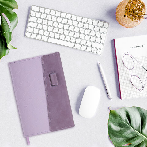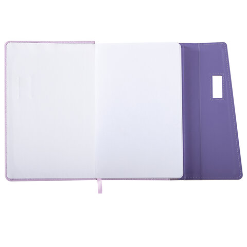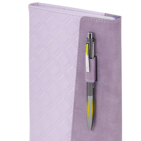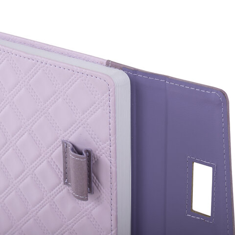 Ежедневник недатированный А5 145х215 мм, BRAUBERG "Stitch", под кожу, магнит, 160 л., сиреневый, 116589