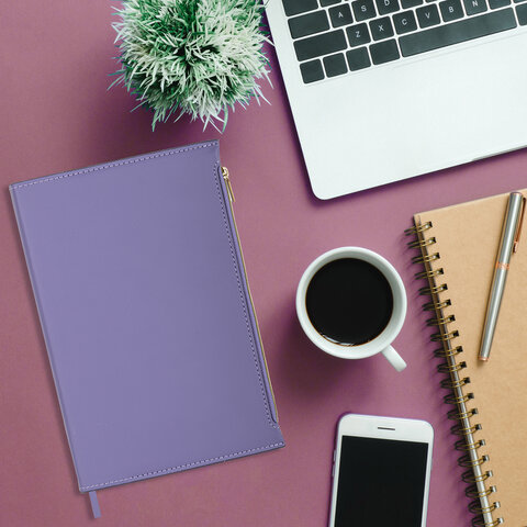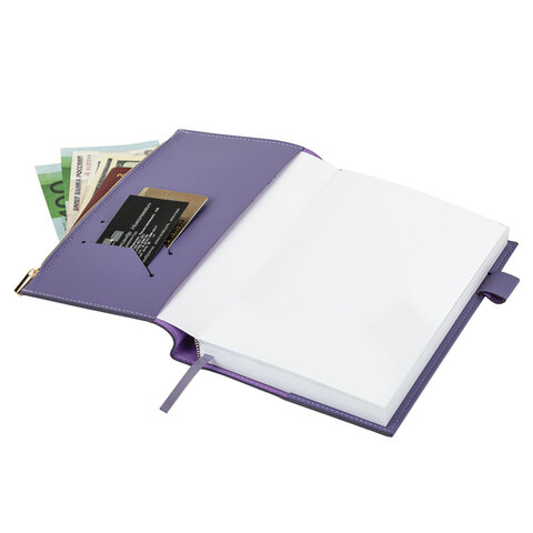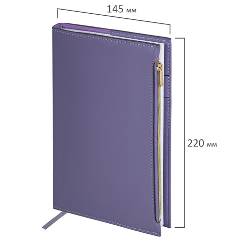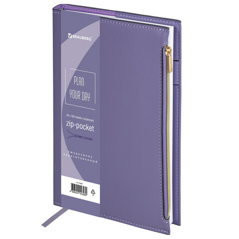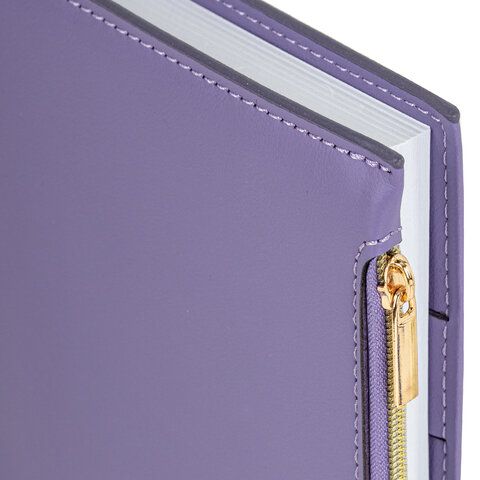 Ежедневник недатированный А5 145х220 мм, BRAUBERG "Zipline" под кожу, карман-молния,160 л., фиолетовый, 116249