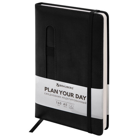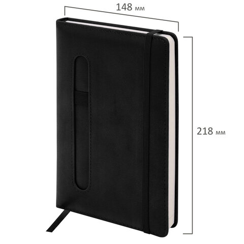 Ежедневник недатированный А5 148x218 мм BRAUBERG "Optimal", под кожу, 160 листов, резинка, держатель для ручки, черный, 118640