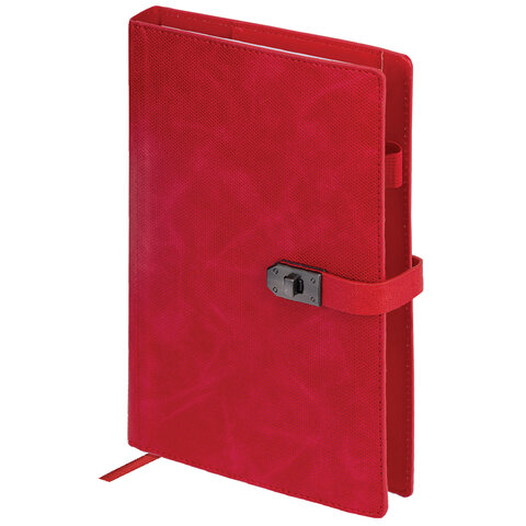 Ежедневник недатированный А5 152х220 мм BRAUBERG "Sirius", под кожу, застежка 160 л., красный, 116212