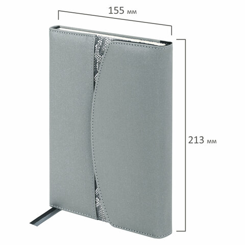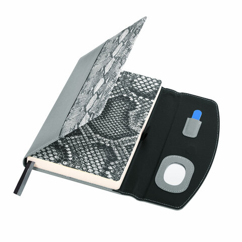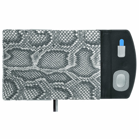 Ежедневник недатированный А5 155х213 мм BRAUBERG "Wild", под кожу, магнит, 160 л., SNAKE, серый, 116234