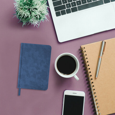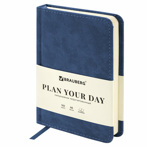 Ежедневник недатированный МАЛЫЙ 100х150 мм А6 BRAUBERG "Status", под кожу, 160 л., синий, 113368