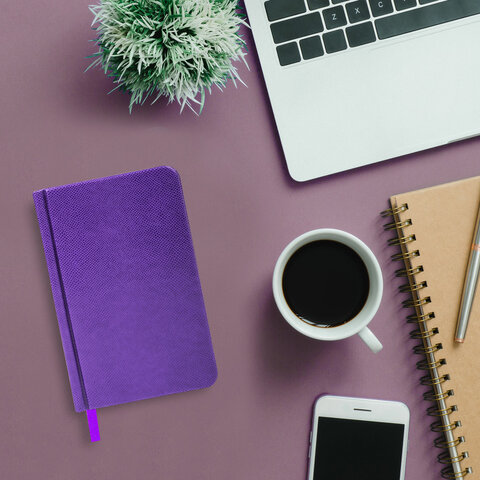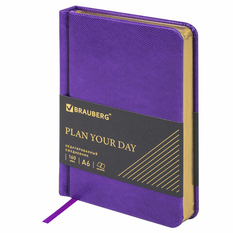Ежедневник недатированный МАЛЫЙ ФОРМАТ 100x150 мм, А6, BRAUBERG "Iguana", под кожу,160 л., сиреневый, 114470