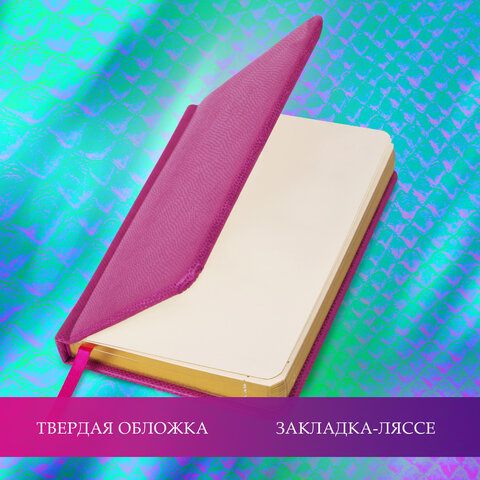 Ежедневник недатированный МАЛЫЙ ФОРМАТ 100x150 мм, А6, BRAUBERG Iguana под кожу, 160 л., розовый, 114469