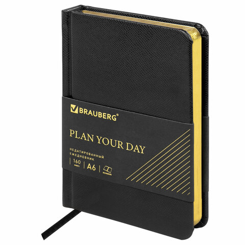 Ежедневник недатированный МАЛЫЙ ФОРМАТ А6, 100х150 мм, BRAUBERG "Iguana", кожзам, 160 л., черный, 125104