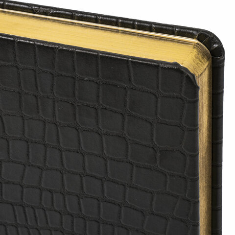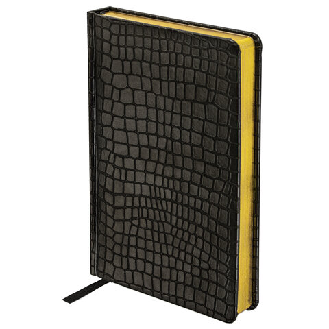 Ежедневник полудатированный А5 (138х213 мм) BRAUBERG "Alligator", под кожу, 192 л., черный, 124985