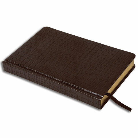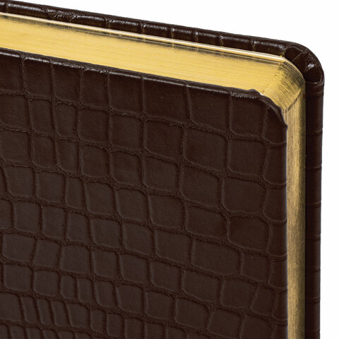 Ежедневник полудатированный А5 (138х213 мм) BRAUBERG "Alligator", под кожу, 192 л., коричневый, 124986