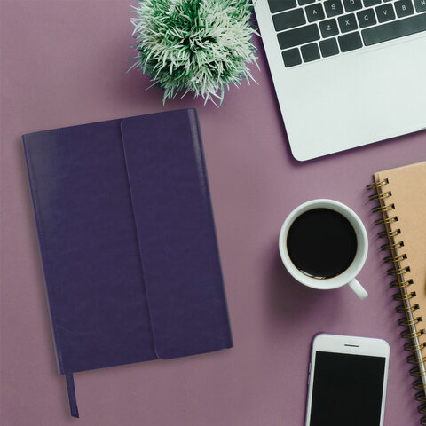 Ежедневник с магнитным клапаном недатированный, под кожу, А5, фиолетовый, BRAUBERG "Magnetic X", 113282