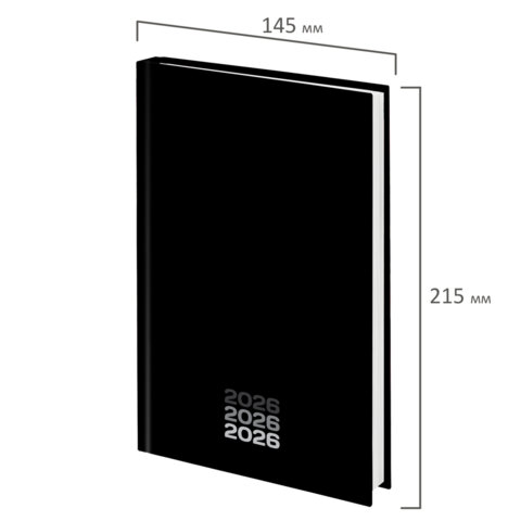 Ежедневник датированный 2026 145х215 мм, А5, STAFF, ламинированная обложка, "Black style", 117325