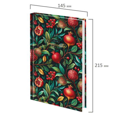 Ежедневник датированный 2026 145х215 мм, А5, STAFF, ламинированная обложка, "Гранаты", 117312