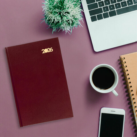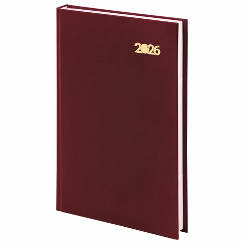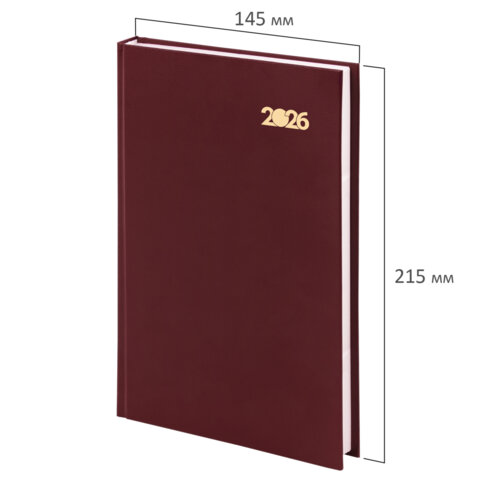 Ежедневник датированный 2026 145х215 мм, А5, STAFF, обложка бумвинил, бордовый, 117306