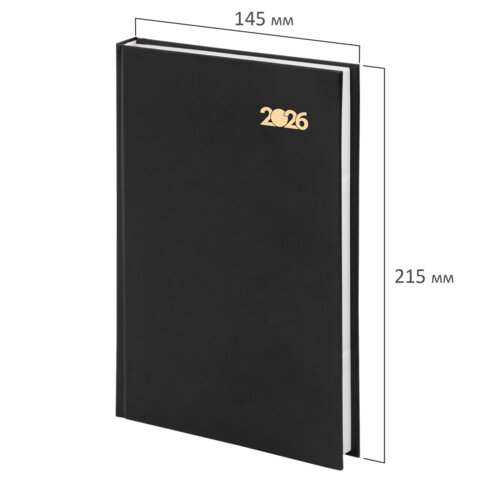 Ежедневник датированный 2026 145х215 мм, А5, STAFF, обложка бумвинил, черный, 117307