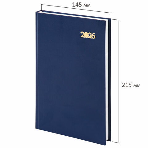 Ежедневник датированный 2026 145х215 мм, А5, STAFF, обложка бумвинил, синий, 117305