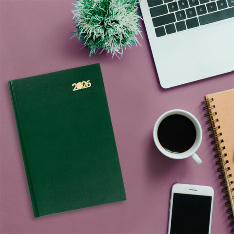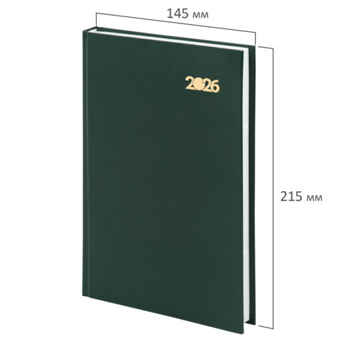 Ежедневник датированный 2026 145х215 мм, А5, STAFF, обложка бумвинил, зелёный, 117308