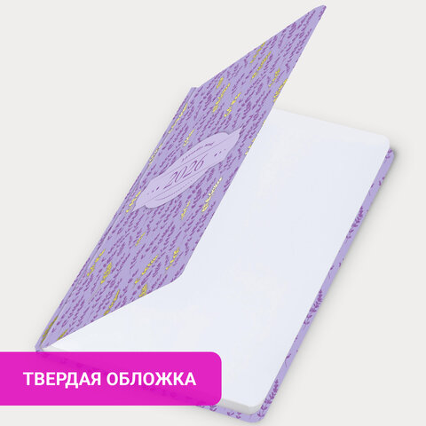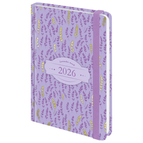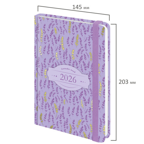 Ежедневник датированный 2026 с резинкой 145х203 мм, А5, BRAUBERG твердый, фольга, "Лаванда", 117344