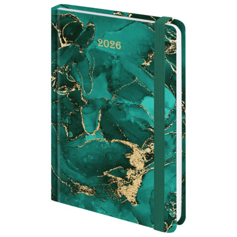 Ежедневник датированный 2026 с резинкой 145х203 мм, А5, BRAUBERG, твердый, фольга, "Мрамор", 117340