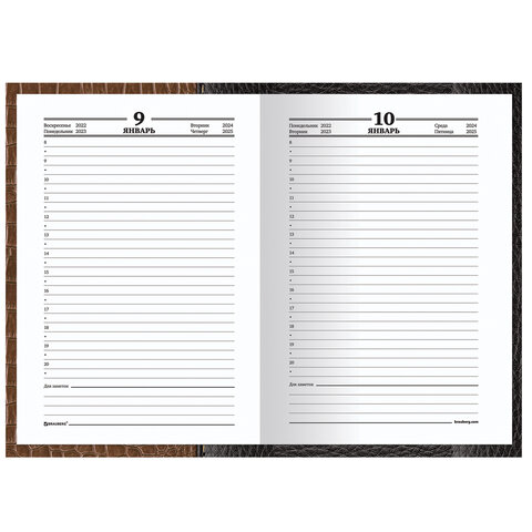 Универсальный ежедневник, который позволяет вести записи в любом году из четырех, указанных на страницах внутреннего блока.