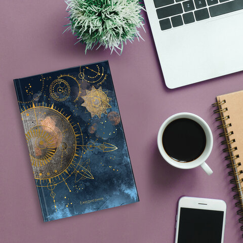 Ежедневник недатированный А5 (145х215 мм), ламинированная обложка с фольгой, 128 л., STAFF, "Astrology", 113519