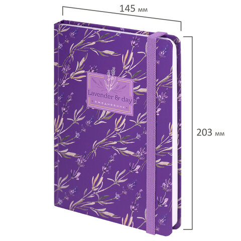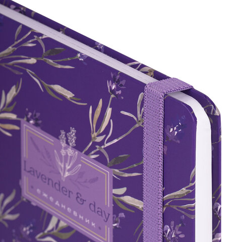 Ежедневник недатированный с резинкой А5 (145х203 мм), BRAUBERG, твердый, 128 л., "Лаванда", 114556