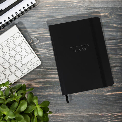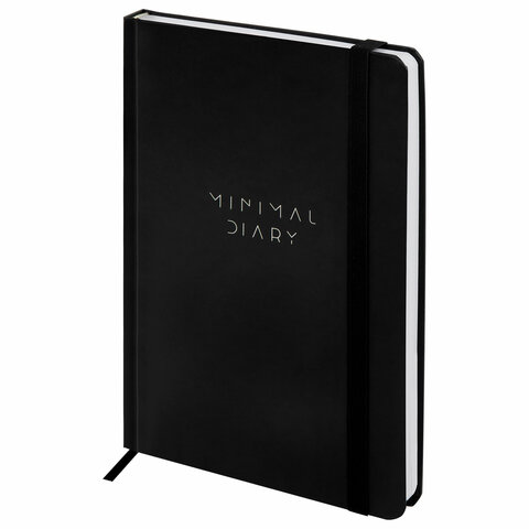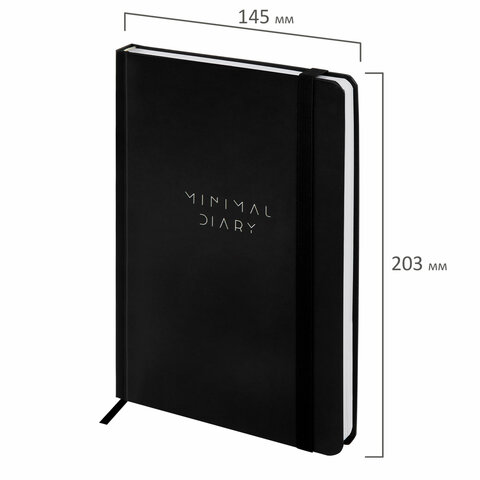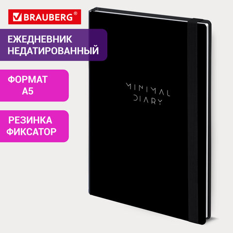 Ежедневник недатированный с резинкой А5 145х203 мм, BRAUBERG, твердый, 128 л., "Minimal", черный, 116284