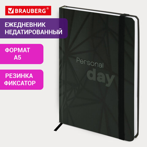Ежедневник недатированный с резинкой А5 145х203 мм, BRAUBERG, твердый, 128 л., "Personal day", 116285