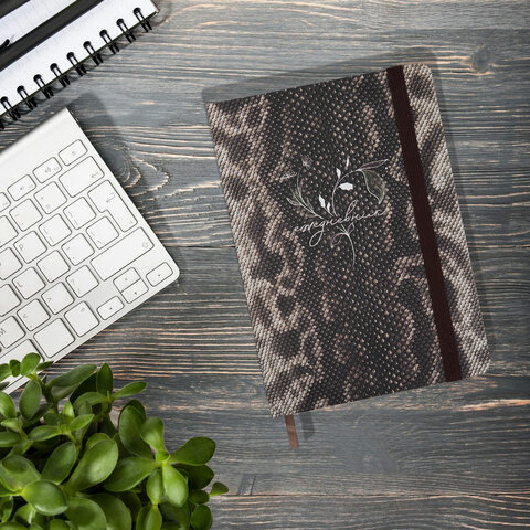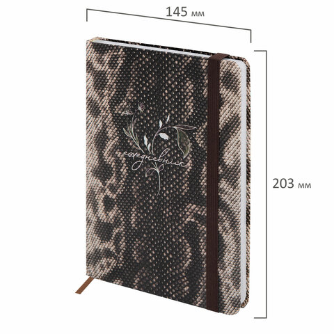 Ежедневник недатированный с резинкой А5 145х203 мм, BRAUBERG, твердый, 128 л., "Snake print", 116286