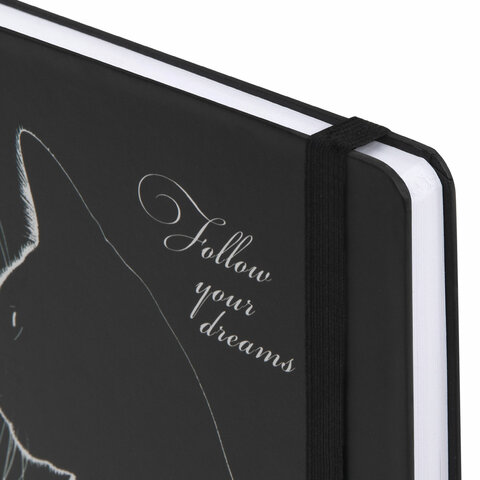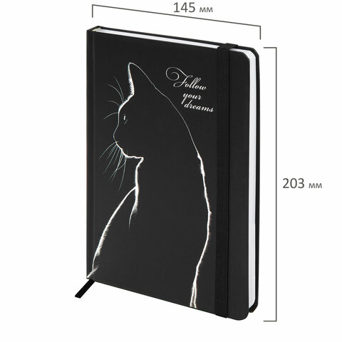 Ежедневник недатированный с резинкой А5 145х203 мм, BRAUBERG, твердый, 160 л., "Black cat", 116305