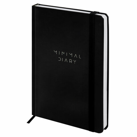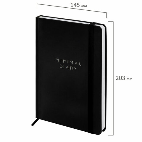 Ежедневник недатированный с резинкой А5 145х203 мм, BRAUBERG, твердый, 160 л., "Minimal", черный, 116299
