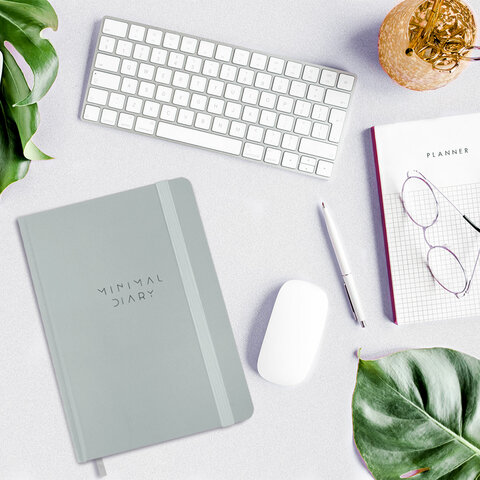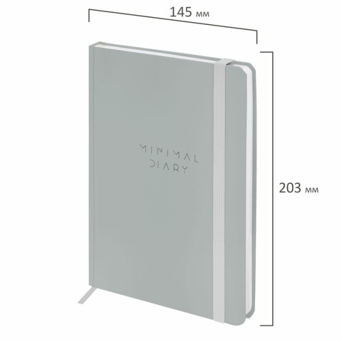 Ежедневник недатированный с резинкой А5 145х203 мм, BRAUBERG, твердый, 160 л, "Minimal", серый, 116302