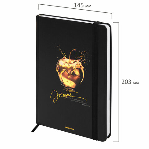 Ежедневник недатированный с резинкой А5 145х203 мм, BRAUBERG, твердый, фольга, 128 л., "Apple", 116294