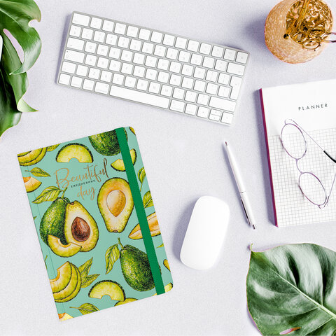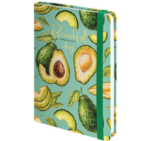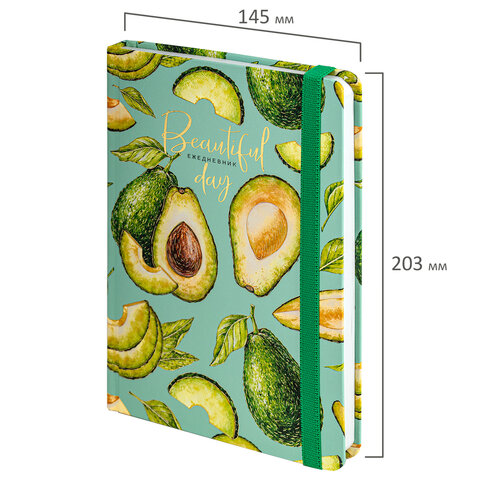 Ежедневник недатированный с резинкой А5 (145х203 мм), BRAUBERG, твердый, фольга, 128 л., "Avocado", 114563