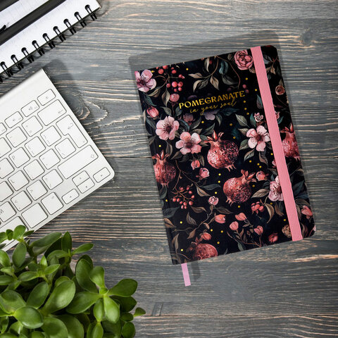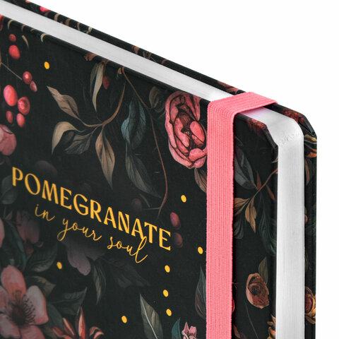 Ежедневник недатированный с резинкой А5 145х203 мм, BRAUBERG, твердый, фольга, 128 л., "Pomegranate", 116293