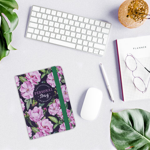 Ежедневник недатированный с резинкой, МАЛЫЙ ФОРМАТ А6 (109х148 мм), BRAUBERG, 128 л., "Розы", 114572